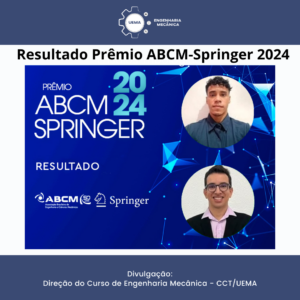 Nosso egresso Tárcio Cardoso Barros e o Professor Dr. Alisson Augusto Azevedo Figueiredo receberam o Prêmio ABCM-Springer 2024, concedido pela Associação Brasileira de Ciências Mecânicas (ABCM) – a entidade mais importante da área de Engenharia Mecânica no Brasil.